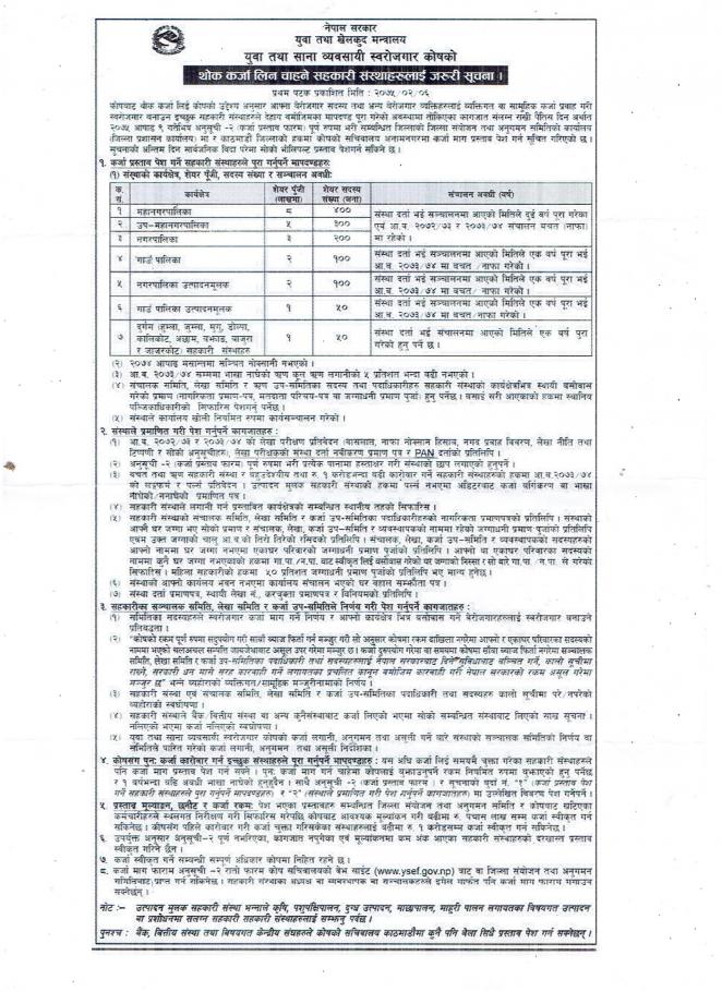 » थाेक कर्जा लिन चाहने सहकारी संस्थाहरूलार्इ जरूरी सूचना ।।।